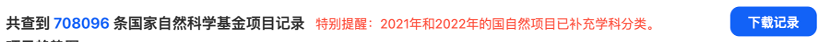 2.最新一年的数据可能存在没有学科分类的情况,查询时请注意合理选择学科分类:数理科学部选学部,其他选第二级分类如H03;