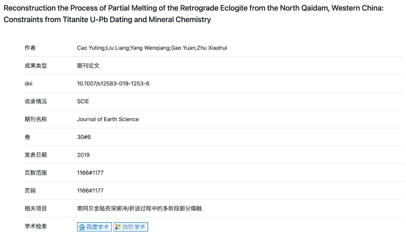 展示了项目成果的基本信息,包含标题、作者、成果类型、收录情况、发表类型等。