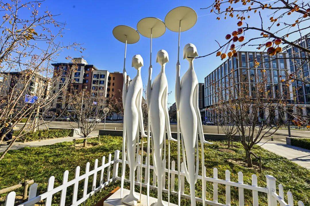 冬日清晨,六合南街已迎来不少徒步的居民。这条全长800米的雕塑走廊,是宋庄“户外美术馆”计划的重要组成部分,25组雕塑与街区绿地诗意对话,让艺术融入日常。