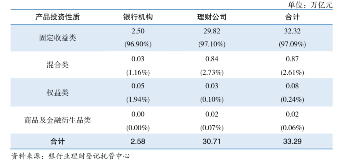 2. 结构失衡,固收仍占主导:固收类产品占比超97%,权益类产品规模极小但有微弱增长,短期理财仍是主流,不过封闭式中长期产品占比也在提升;