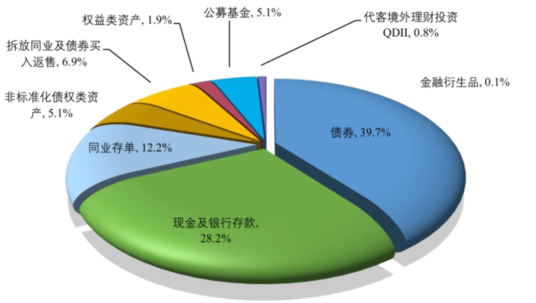 一是过去市场好时攒下的“留存收益”,用来缓冲市场波动,不过现在这部分储备已基本耗尽,2026年收益波动会更明显;二是底层资产以固收为主,80%以上投向债券、存款,风险本身不高,波动主要来自债市,和股市关系不大。下图是理财产品的各类资产配置比例: