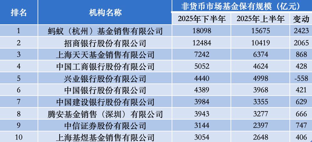 值得注意的是,中信证券2025年下半年非货保有规模环比增加了747亿元,重回前十榜单;平安银行则退出前十。