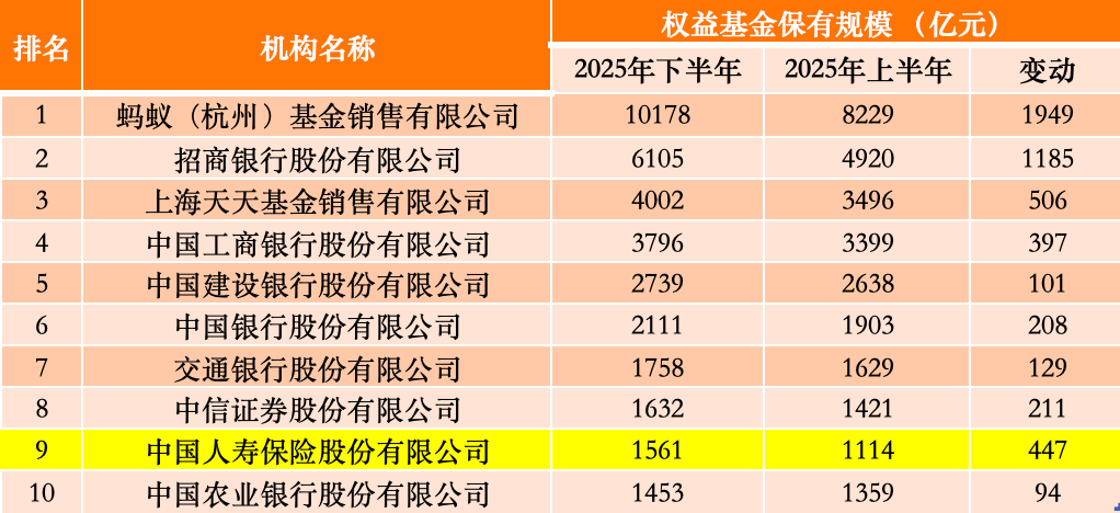 与2025年上半年相同的是,在股票指数基金的代销保有规模前五名中,依旧没有银行的身影。